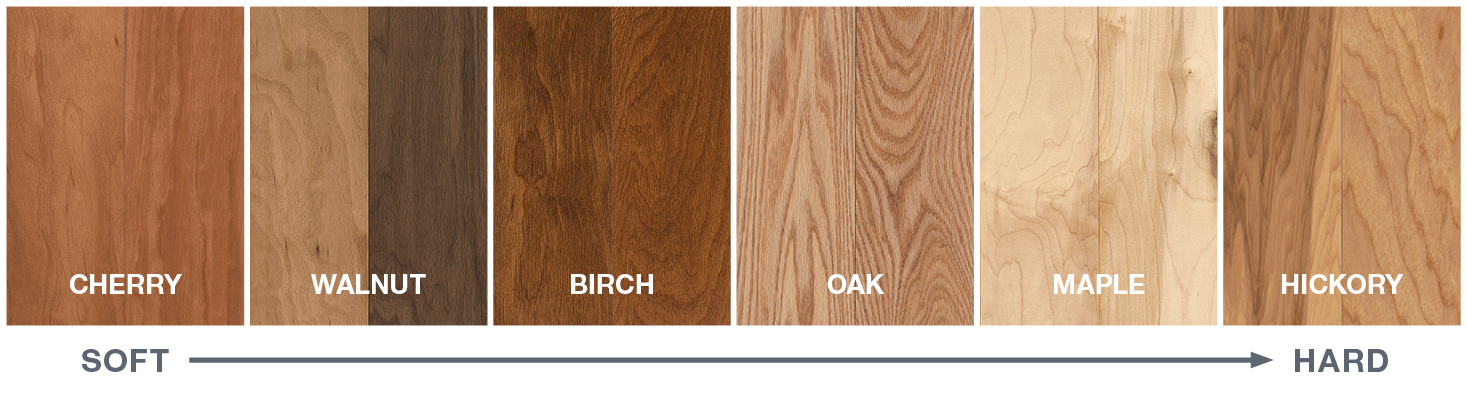 Hardwood species used in flooring are given a hardwood hardness rating which indicates how resistant the wood is to dents and wear. As you would expect, harder woods are better able to withstand indentations than softer woods. Consider Hickory, Oak, Maple or Brazilian Cherry for the greatest durability.